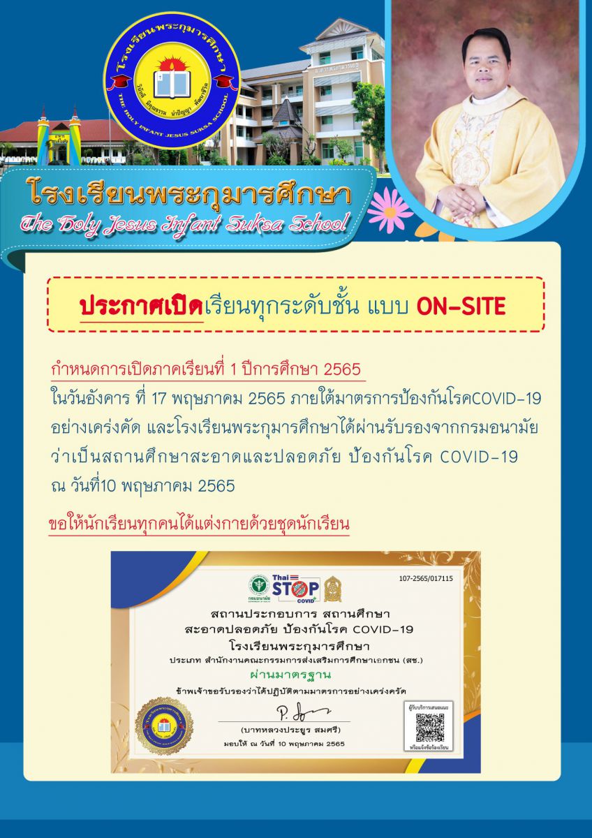 ประกาศเปิดเรียนทุระดับชั้น แบบ onsite